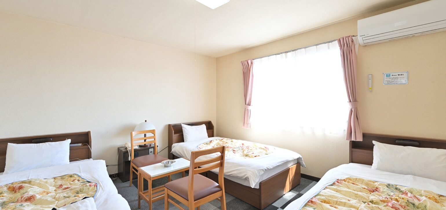 - Wi-Fi利用無料、レンタサイクル2時間無料、スリッパ、ハンガー、ドライヤー、ハンドタオル、歯ブラシ・歯磨き粉、バスタオル、リンスインシャンプー、ボディソープ、浴衣